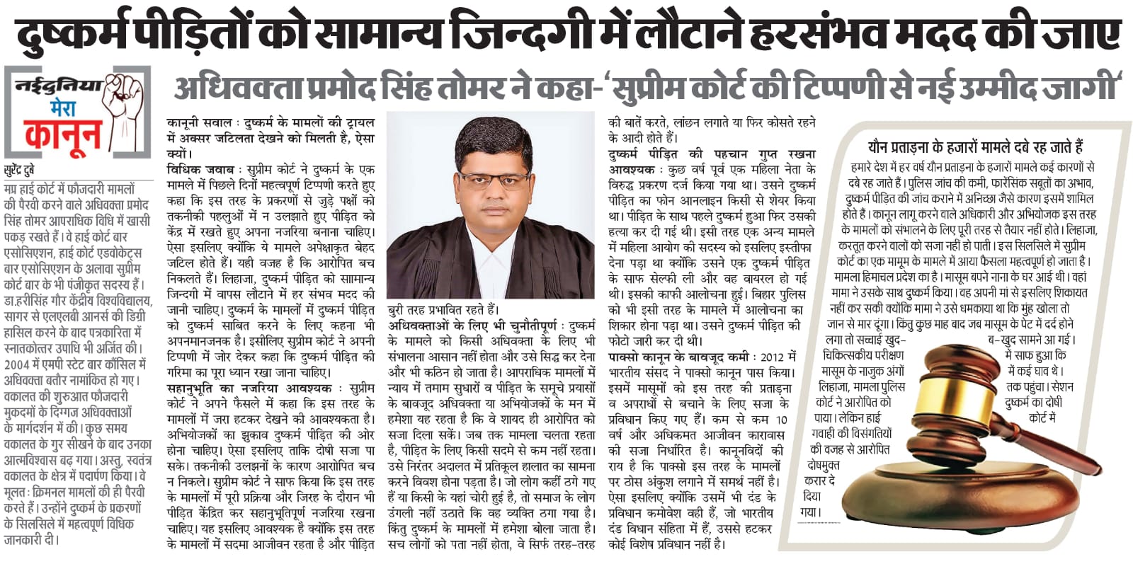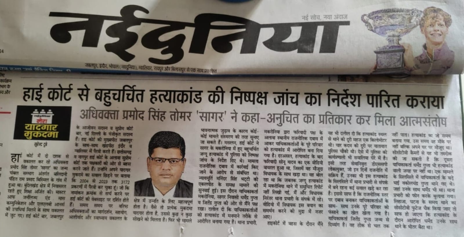 Advocate Pramod Singh Tomar is one of the best advocates in Jabalpur, specializing in personal injury law. This includes cases involving medical malpractice, auto accidents, premises liability, wrongful death, product liability, and other personal injury accidents.